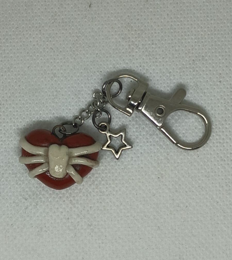 SP68 Llavero de corazon rojo y costillas