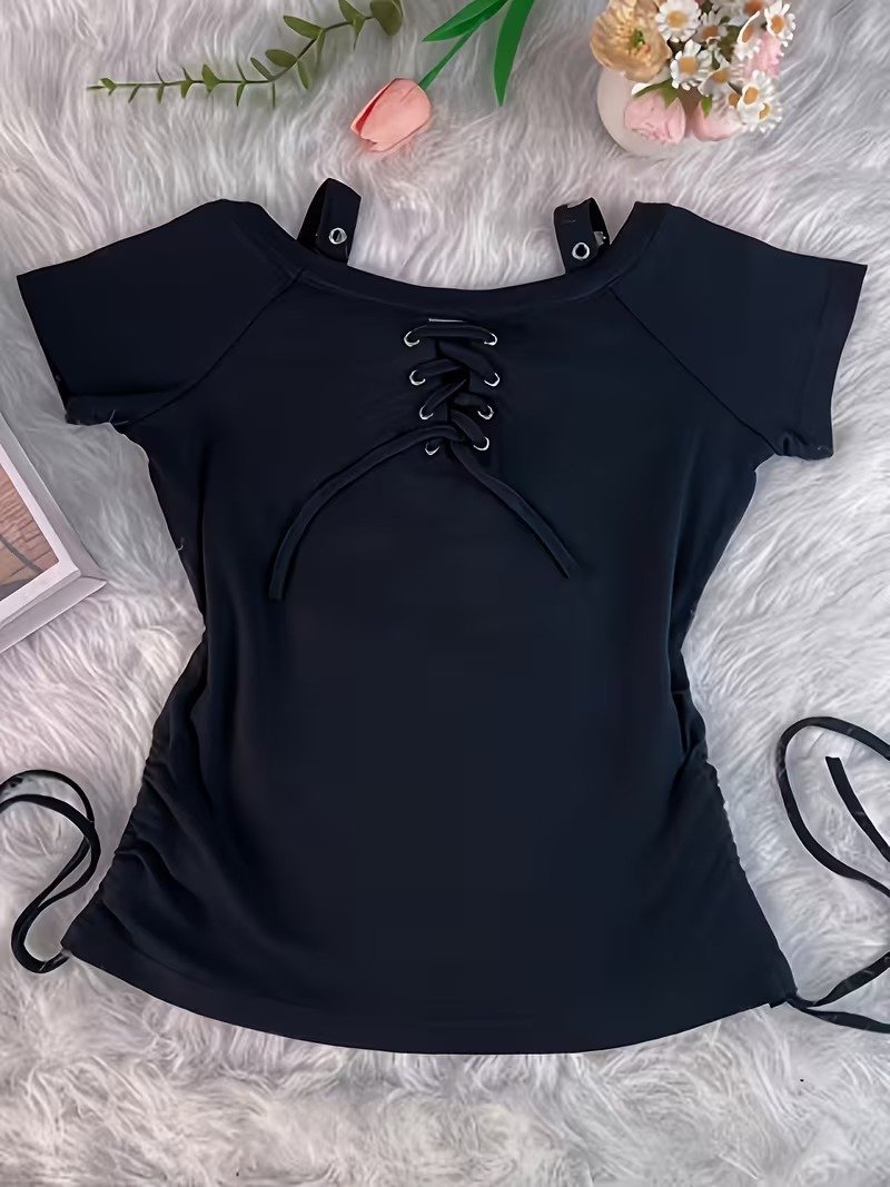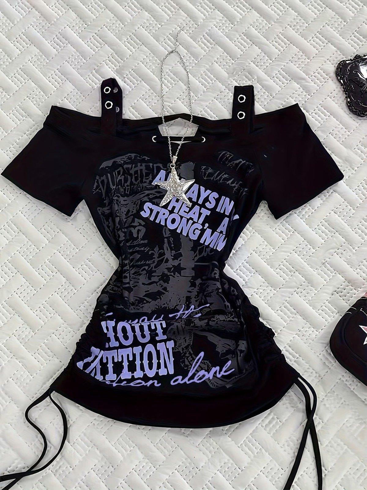 VN1293 Camiseta Estampado de Calavera con Lazo EspaldarY2K T/M