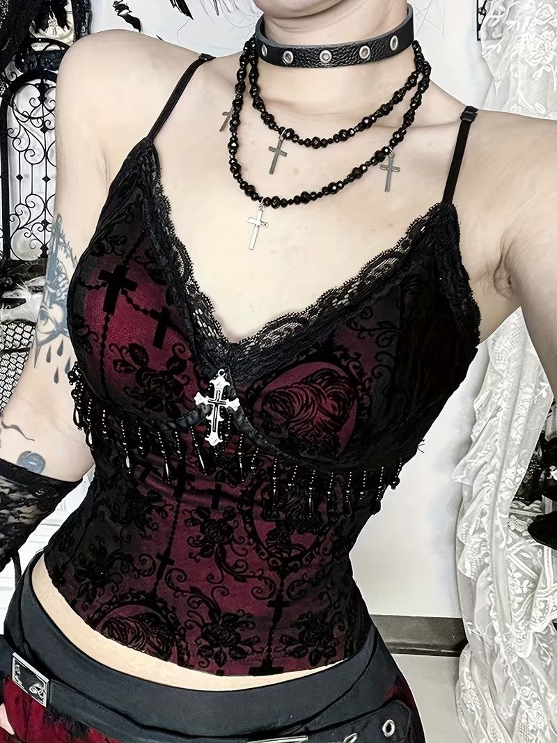 VN1295 Top Bustier Con Tirantes y Cruz Gótica Aterciopelada T/M